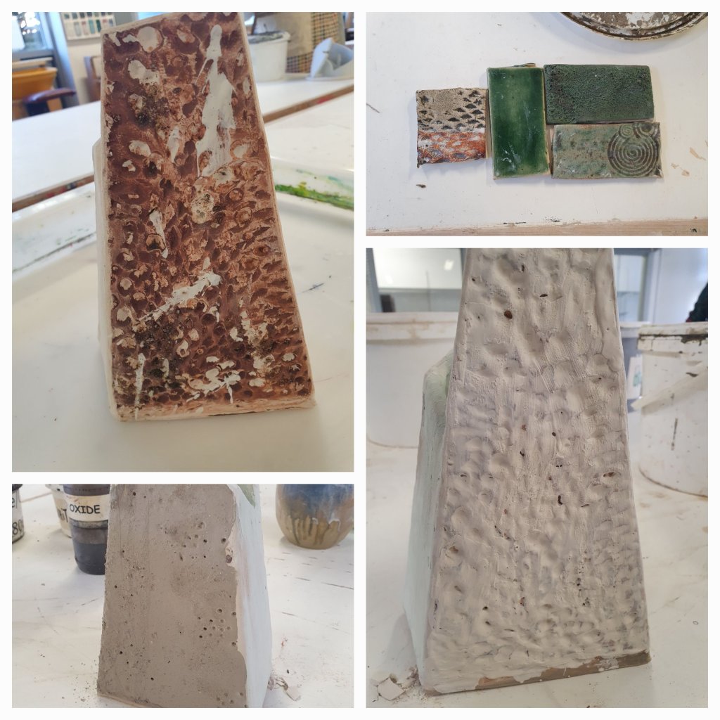 The texture in the clay played a part in my decision of how to apply the glaze as I wanted to highlight them and bring them out as it would be easy to flatten them by applying too thickly.