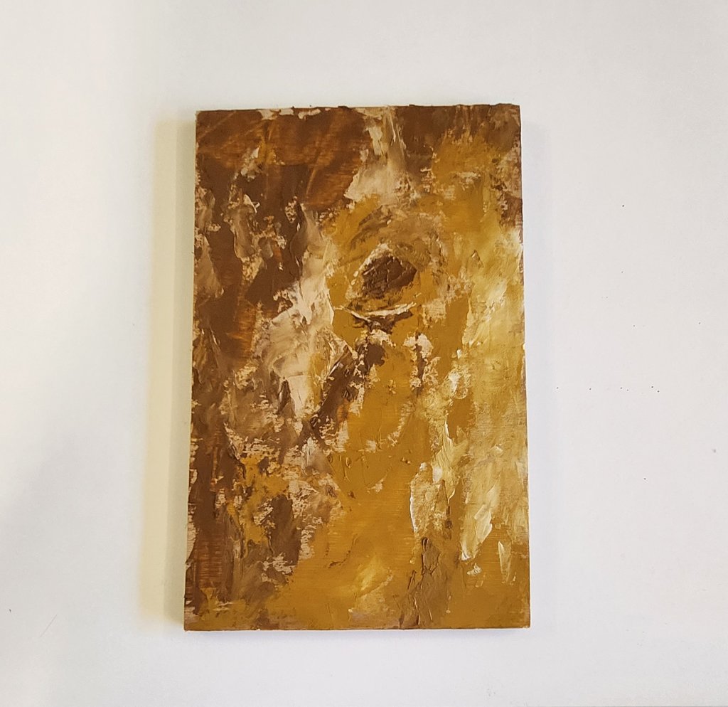 As I started to put the paint down using a pallette knife I remembered a photograph of my friends horse I had taken. His coat is a mixture if these hues and the painting morphed into an abstract representation of him.