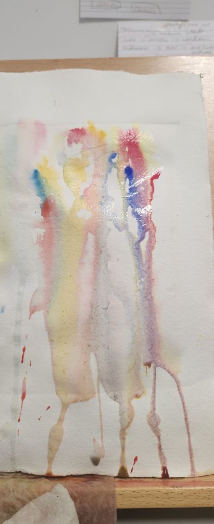 I then used water colours to add colour to the embossed paper and experimented with different ways to apply the paints.