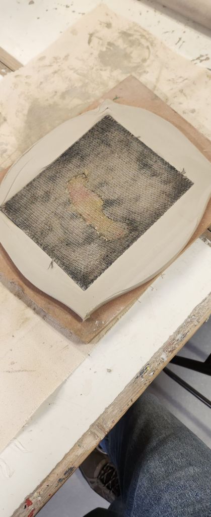 When I removed the lino from the tile above, I realised that I had forgotten to dust it with powder to stop it sticking and the didn’t dry the clay out enough before I pressed the lino in it.