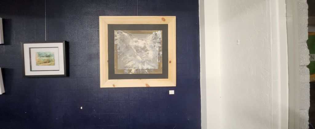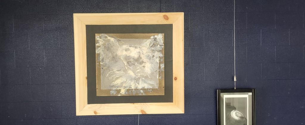 The second years were holding a “Sustain” exhibition at The Cheddar Arts Quarter. I didn’t have any new work specifically for this, so I exhibited “Ghost” the two tone Peregrine Falcon I did in year one. It fits the remit as it was painted using hand mail white oil paint, and used engine oil, on hand made cotton rag paper by Khadi papers on an offcut of hardboard.